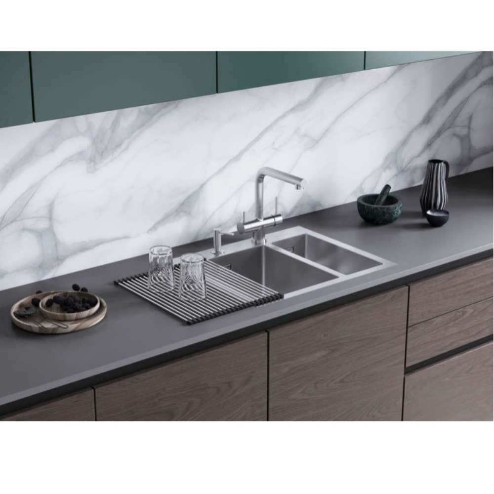 Мойка кухонная Omoikiri из коллекции Akisame 60-2-IN-L имеет размеры 605х510 мм., изготовлена из нержавеющей стали. Форма — прямоугольная, одна чаша с отверстием для смесителя. Сифон в комплекте. Ширина чаши 34. Врезной монтаж. Имеется дополнительная чаша.