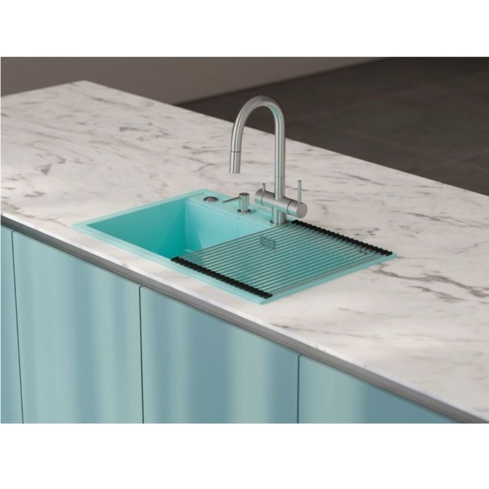Мойка кухонная Omoikiri из коллекции Kitagawa 79-LB-WH имеет размеры 790х510 мм., изготовлена из искусственной керамики. Форма — прямоугольная, одна чаша без отверстия для смесителя. Сифон в комплекте. Ширина чаши 72,6. Врезной монтаж.