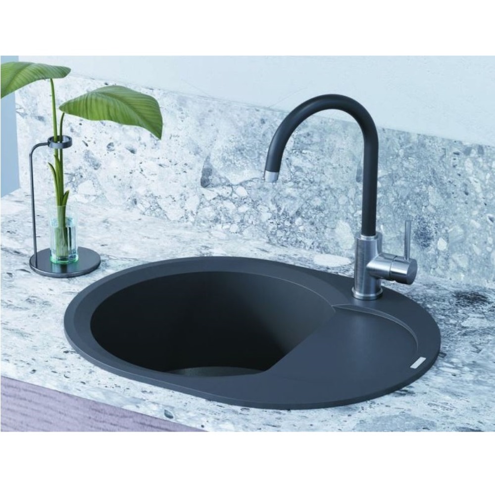 Мойка кухонная Omoikiri из коллекции Sakaime 60E-PL имеет размеры 600х470 мм., изготовлена из искусственного гранита. Форма — овальная, одна чаша без отверстия для смесителя. Сифон в комплекте. Ширина чаши 35. Врезной монтаж. Имеется крыло.