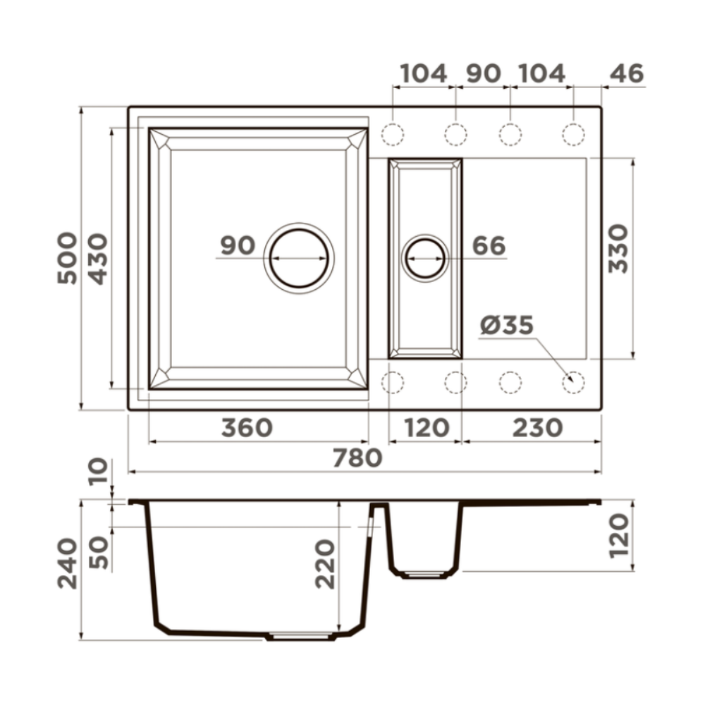 Мойка кухонная Omoikiri из коллекции Sakaime 78-2-WH имеет размеры 780х500 мм., изготовлена из искусственного гранита. Форма — прямоугольная, одна чаша без отверстия для смесителя. Сифон в комплекте. Ширина чаши 36. Врезной монтаж. Имеется дополнительная чаша и крыло.
