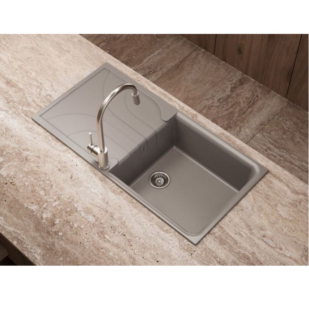 Мойка кухонная Omoikiri из коллекции Yasugata 100-GR имеет размеры 1000х500 мм., изготовлена из искусственного гранита. Форма — прямоугольная, одна чаша без отверстия для смесителя. Сифон в комплекте. Ширина чаши 48. Врезной монтаж. Имеется крыло.