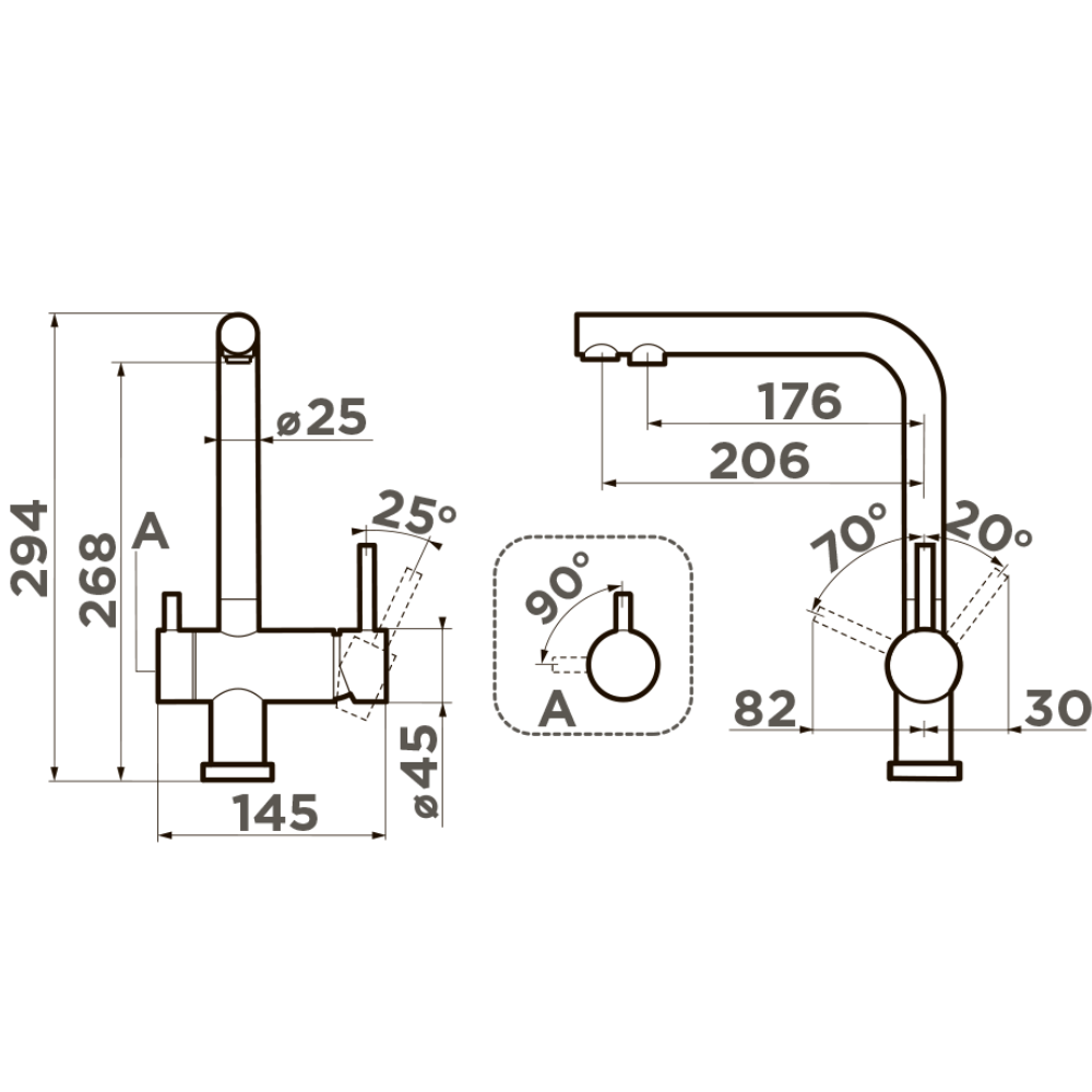 Смеситель для кухни Omoikiri Nagano с подключением фильтра оснащен рычажным управлением для регулировки температуры и напора воды. Горизонтальный монтаж на 1 отверстие. Поворотный излив 176 мм.