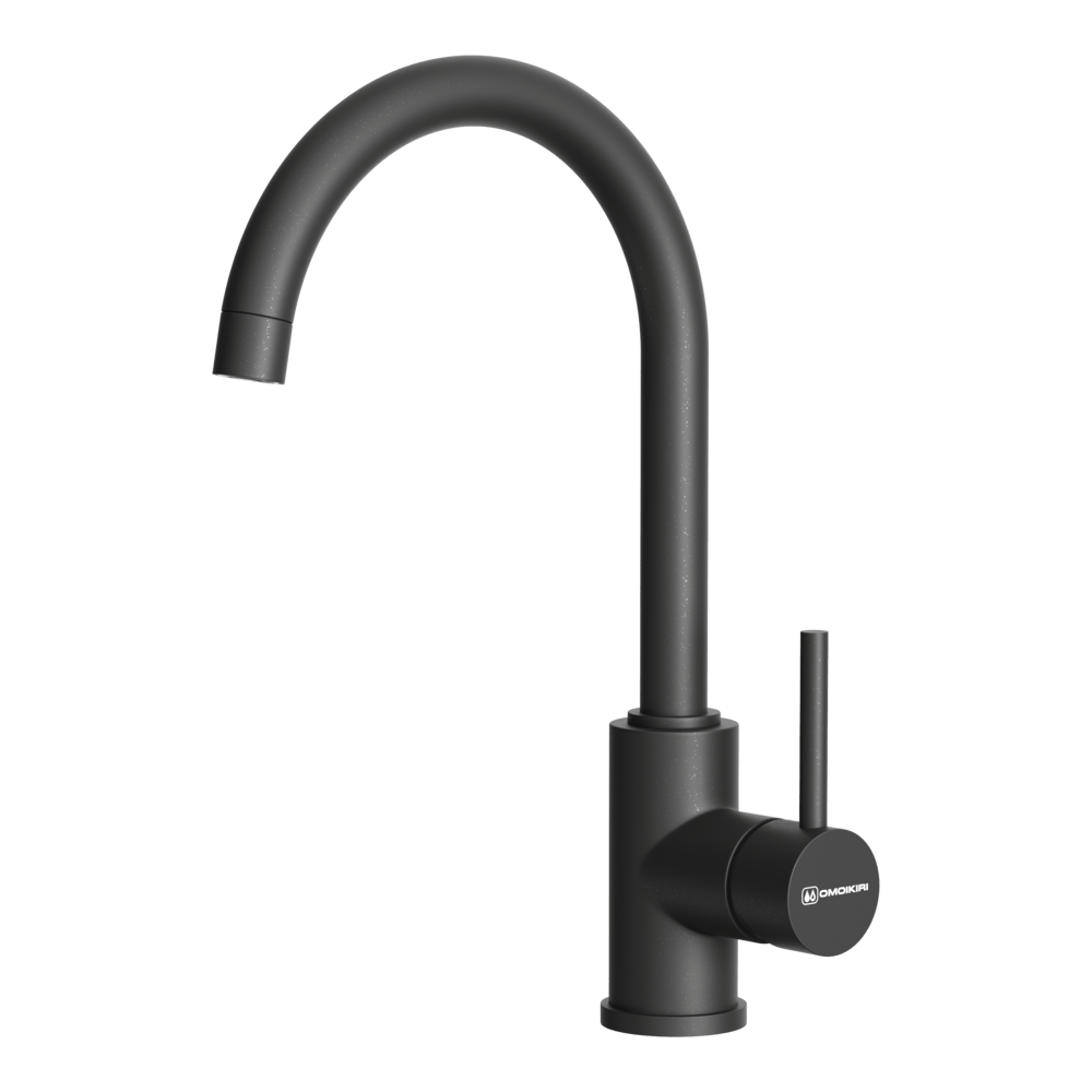 Смеситель для кухни Omoikiri Shinagawa-P оснащен рычажным управлением для регулировки температуры и напора воды. Горизонтальный монтаж на 1 отверстие. Поворотный излив 182 мм.