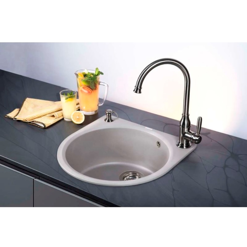 Мойка кухонная Omoikiri из коллекции Akegata 51-GR имеет размеры 510х510 мм., изготовлена из искусственного гранита. Форма — округлая, одна чаша без отверстия для смесителя. Сифон в комплекте. Ширина чаши 46. Врезной монтаж.