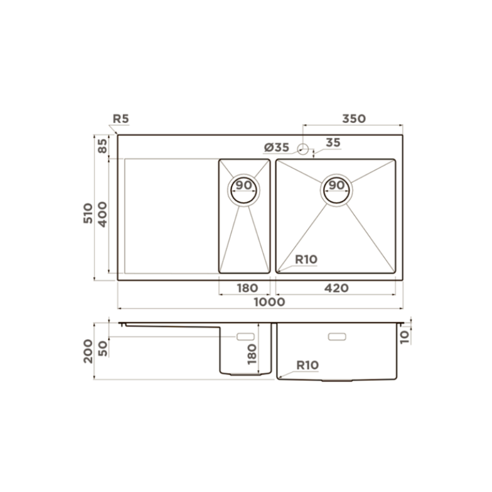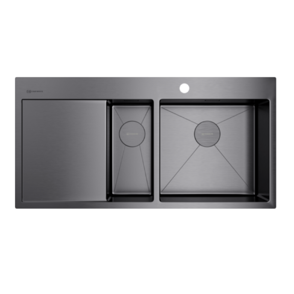 Мойка кухонная Omoikiri из коллекции Akisame 100-2-GM-R имеет размеры 1000х510 мм., изготовлена из нержавеющей стали. Форма — прямоугольная, одна чаша с отверстием для смесителя. Сифон в комплекте. Ширина чаши 42. Врезной монтаж. Имеется дополнительная чаша и крыло.