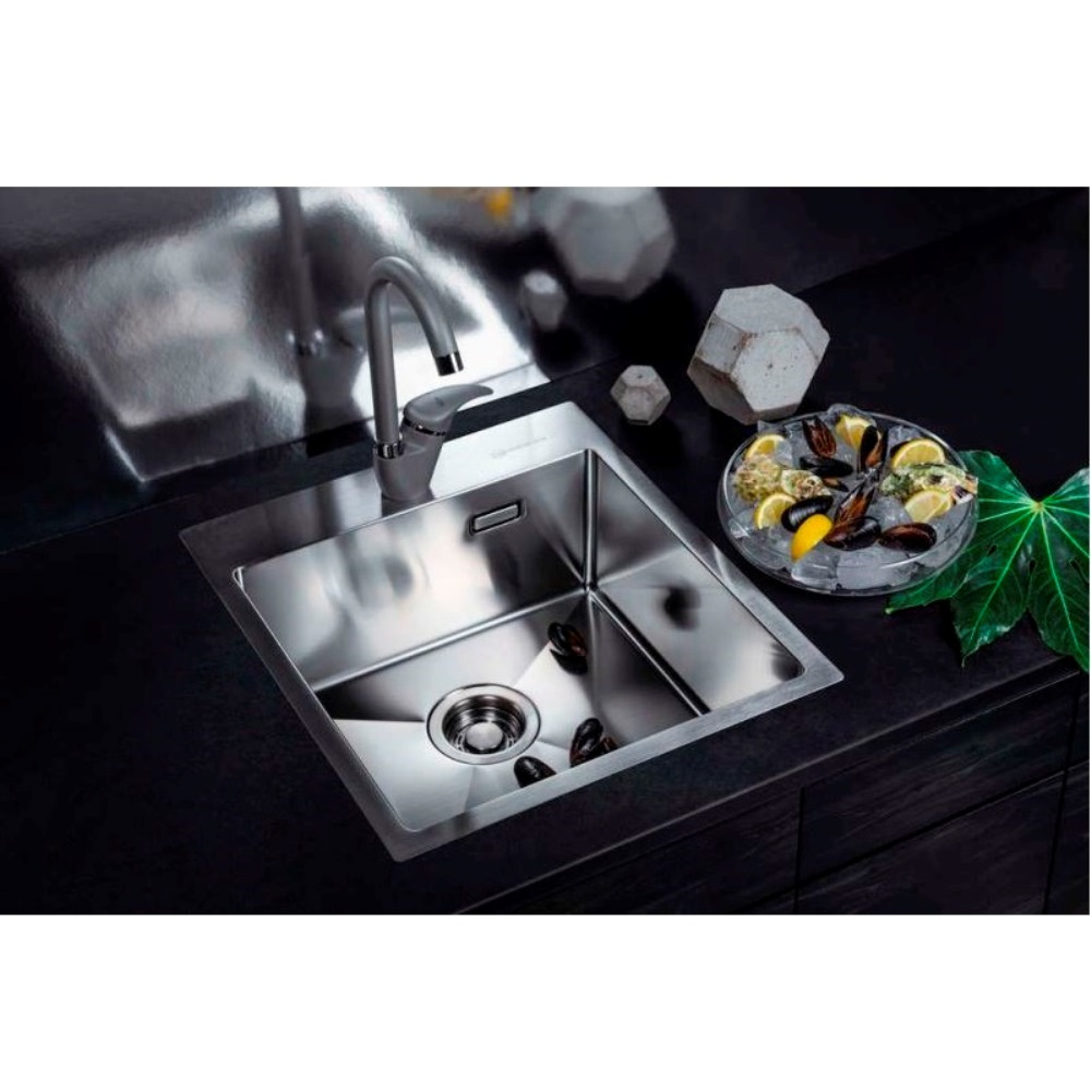 Мойка кухонная Omoikiri из коллекции Akisame 46-IN имеет размеры 460х510 мм., изготовлена из нержавеющей стали. Форма — прямоугольная, одна чаша с отверстием для смесителя. Сифон в комплекте. Ширина чаши 41. Врезной монтаж.
