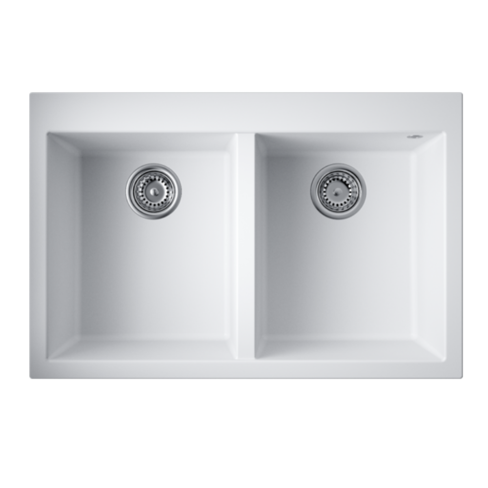 Мойка кухонная Omoikiri из коллекции Bosen 80-2-WH имеет размеры 800х530 мм., изготовлена из искусственного гранита. Форма — прямоугольная, две чаши без отверстия для смесителя. Сифон в комплекте. Ширина чаши 34,7. Врезной монтаж.