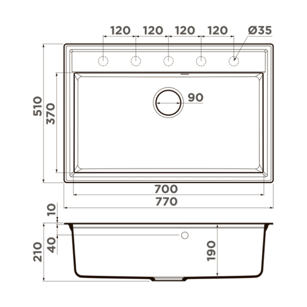 Мойка кухонная Omoikiri из коллекции Daisen 77-BE имеет размеры 770х510 мм., изготовлена из искусственного гранита. Форма — прямоугольная, одна чаша без отверстия для смесителя. Сифон в комплекте. Ширина чаши 70. Врезной монтаж
