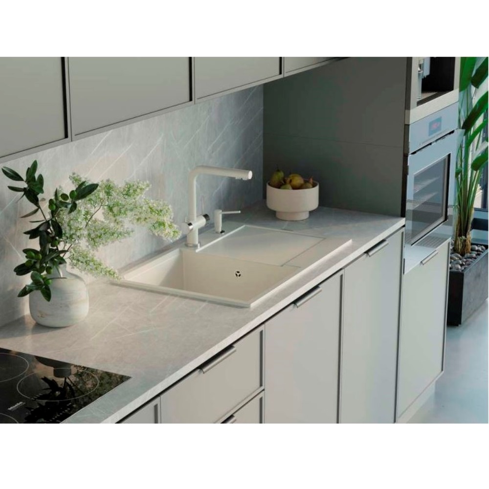 Мойка кухонная Omoikiri из коллекции Daisen 78T-SA имеет размеры 780х510 мм., изготовлена из искусственного гранита. Форма — прямоугольная, одна чаша без отверстия для смесителя. Сифон в комплекте. Ширина чаши 38. Врезной монтаж. Имеется крыло.