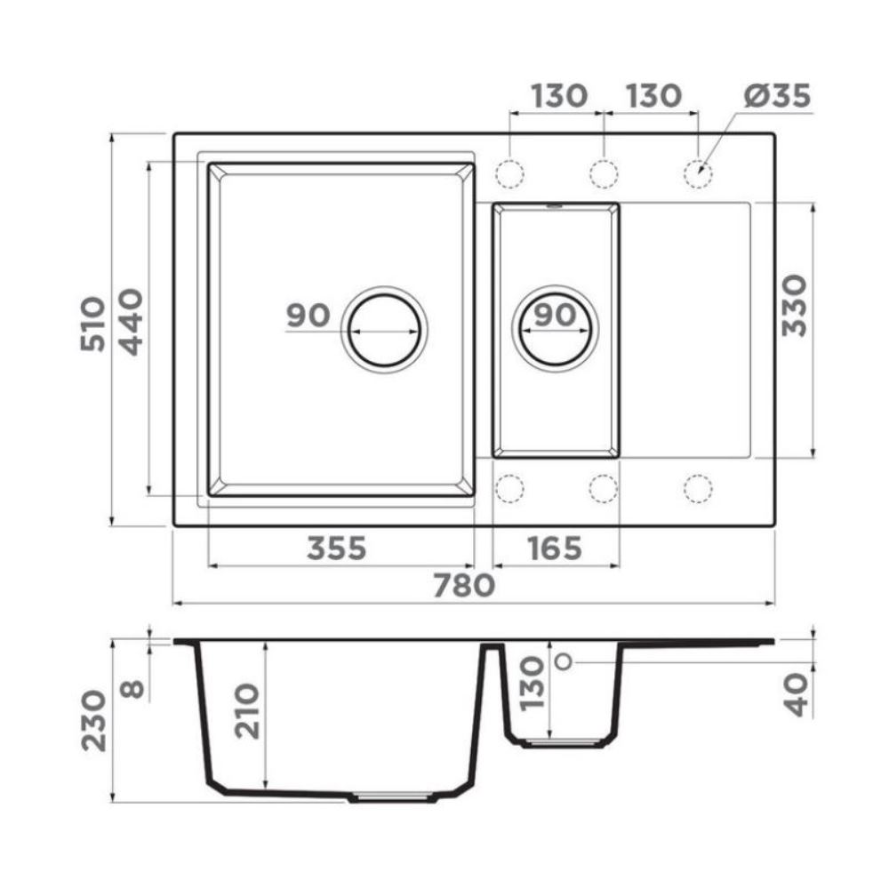 Мойка кухонная Omoikiri из коллекции Daisen 78-2T-BE имеет размеры 780х510 мм., изготовлена из искусственного гранита. Форма — прямоугольная, одна чаша без отверстия для смесителя. Сифон в комплекте. Ширина чаши 35,5. Врезной монтаж. Имеется дополнительная чаша.