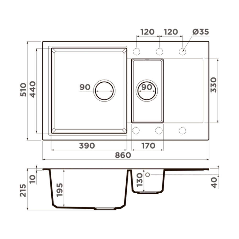 Мойка кухонная Omoikiri из коллекции Daisen 86-2-PA имеет размеры 860х510 мм., изготовлена из искусственного гранита. Форма — прямоугольная, одна чаша без отверстия для смесителя. Сифон в комплекте. Ширина чаши 39. Врезной монтаж. Имеется дополнительная чаша.