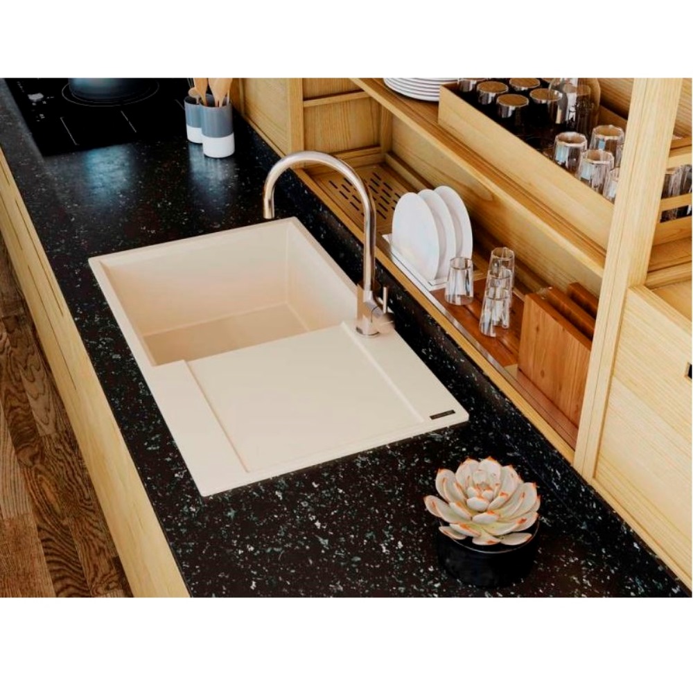 Мойка кухонная Omoikiri из коллекции Daisen 86-BE имеет размеры 860х510 мм., изготовлена из искусственного гранита. Форма — прямоугольная, одна чаша без отверстия для смесителя. Сифон в комплекте. Ширина чаши 44. Врезной монтаж. Имеется крыло.