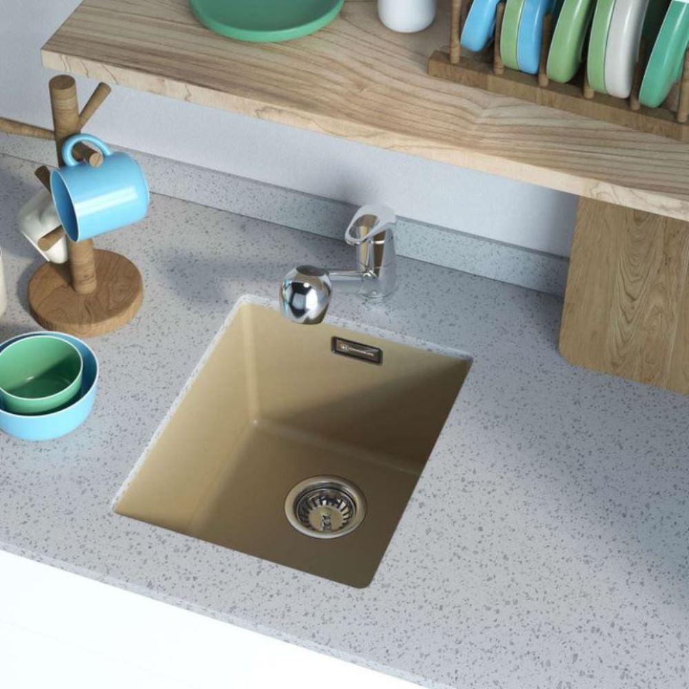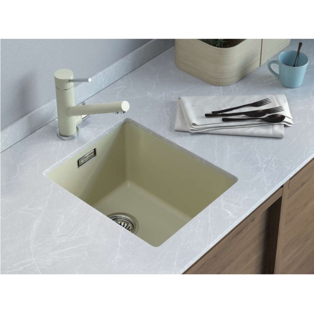 Мойка кухонная Omoikiri из коллекции Kata 34-U-BL имеет размеры 340х420 мм., изготовлена из искусственного гранита. Форма — прямоугольная, одна чаша без отверстия для смесителя. Сифон в комплекте. Ширина чаши 30. Подстольный монтаж