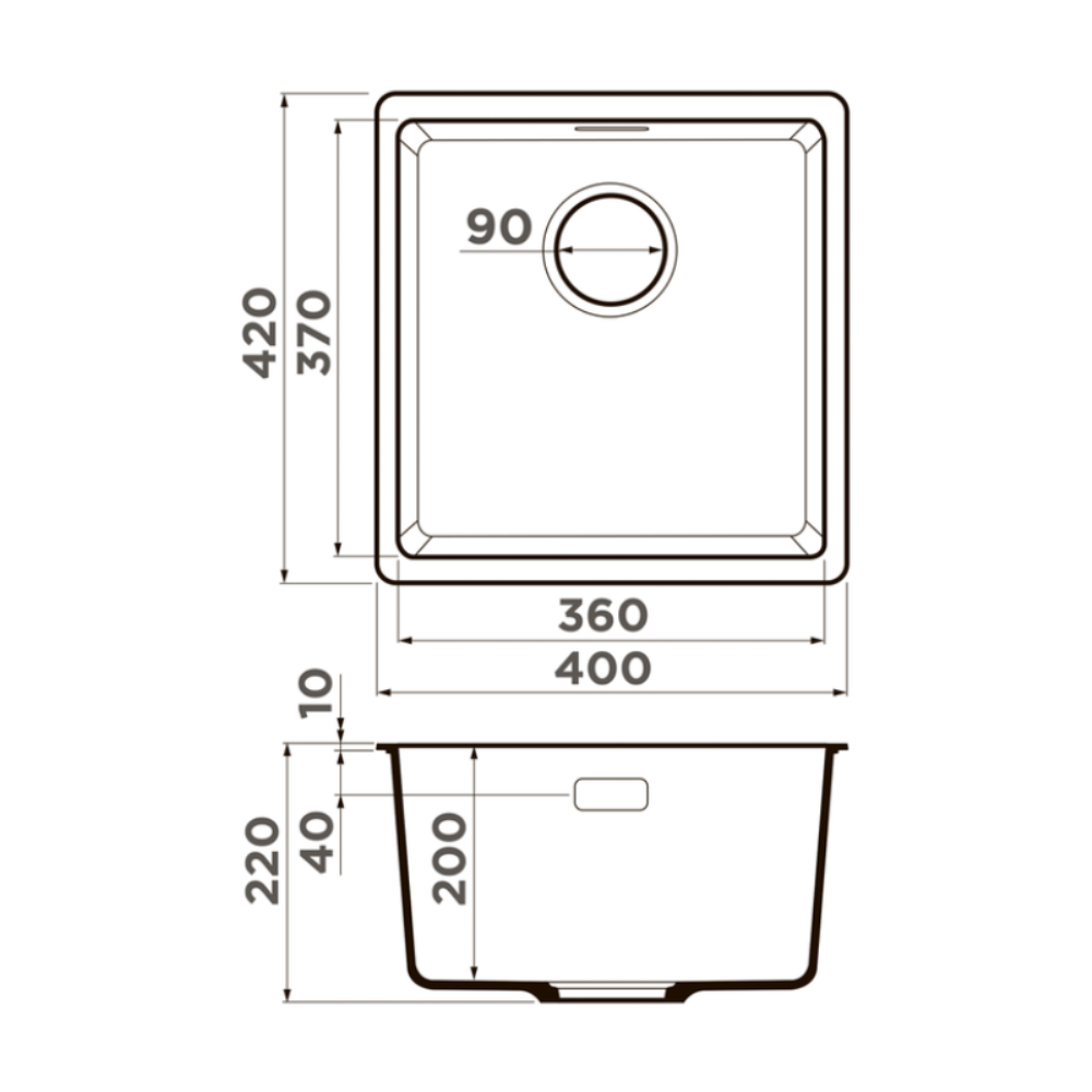Мойка кухонная Omoikiri из коллекции Kata 40-U-GR имеет размеры 400х420 мм., изготовлена из искусственного гранита. Форма — прямоугольная, одна чаша без отверстия для смесителя. Сифон в комплекте. Ширина чаши 36. Подстольный монтаж