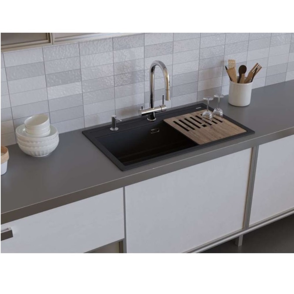 Мойка кухонная Omoikiri из коллекции Kitagawa 86-LB-GR имеет размеры 860х510 мм., изготовлена из искусственной керамики. Форма — прямоугольная, одна чаша без отверстия для смесителя. Сифон в комплекте. Ширина чаши 79,6. Врезной монтаж.