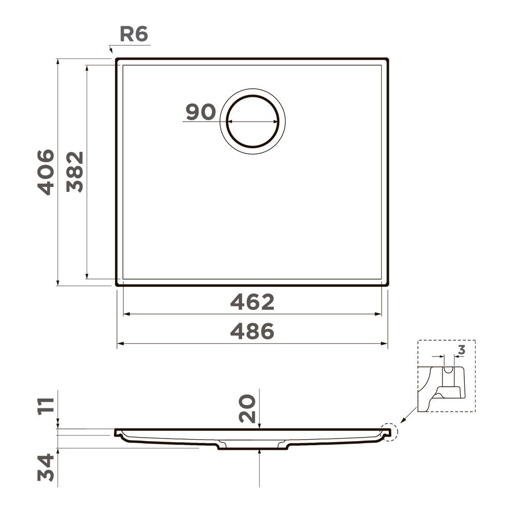 Мойка кухонная Omoikiri из коллекции Kiten 48-INT WH имеет размеры 486х406 мм., изготовлена из искусственной керамики. Форма — прямоугольная, одна чаша без отверстия для смесителя. Сифон в комплекте. Ширина чаши 46,2. Интегрированный монтаж.