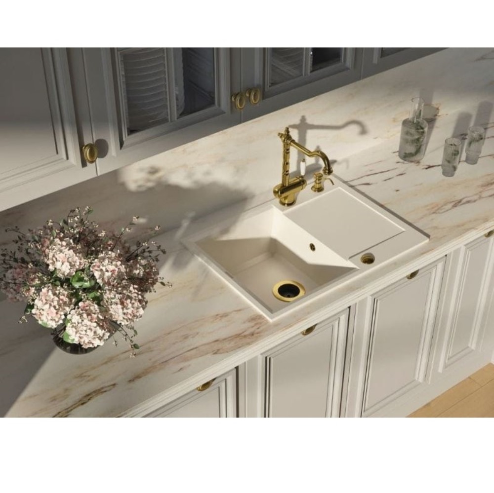 Мойка кухонная Omoikiri из коллекции Sakaime 68-GR имеет размеры 680х500 мм., изготовлена из искусственного гранита. Форма — прямоугольная, одна чаша без отверстия для смесителя. Сифон в комплекте. Ширина чаши 33,8. Врезной монтаж.