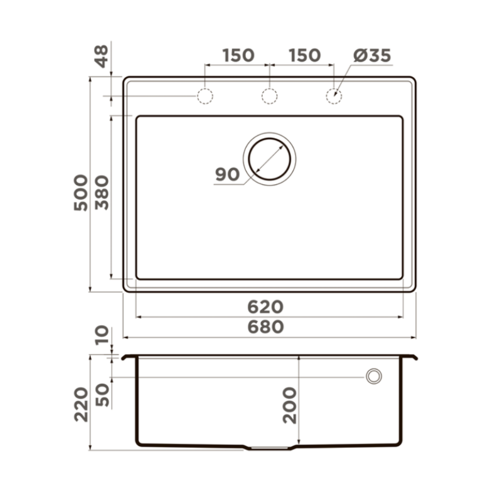 Мойка кухонная Omoikiri из коллекции Tedori 68-SA имеет размеры 680х500 мм., изготовлена из искусственного гранита. Форма — прямоугольная, одна чаша без отверстия для смесителя. Сифон в комплекте. Ширина чаши 62. Врезной монтаж.