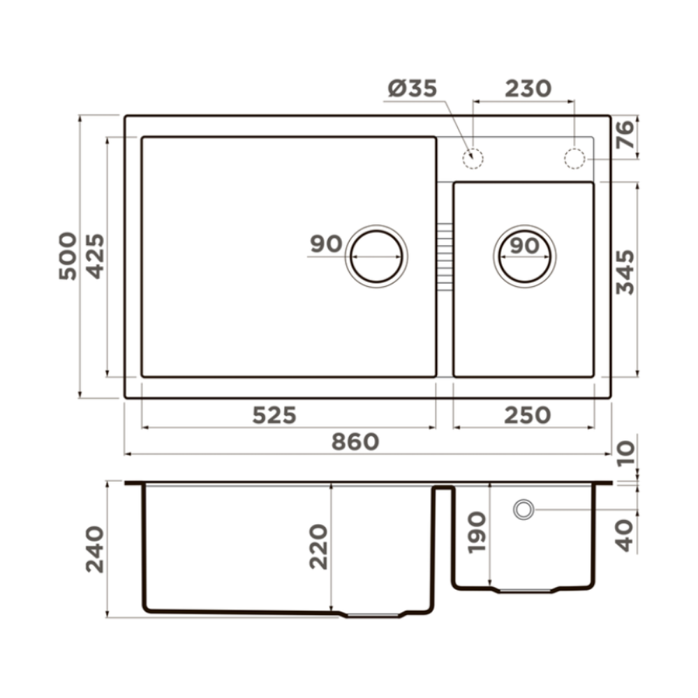 Мойка кухонная Omoikiri из коллекции Tedori 86-2-LB-SA имеет размеры 860х500 мм., изготовлена из искусственного гранита. Форма — прямоугольная, одна чаша без отверстия для смесителя. Сифон в комплекте. Ширина чаши 52,5. Врезной монтаж. Имеется дополнительная чаша.