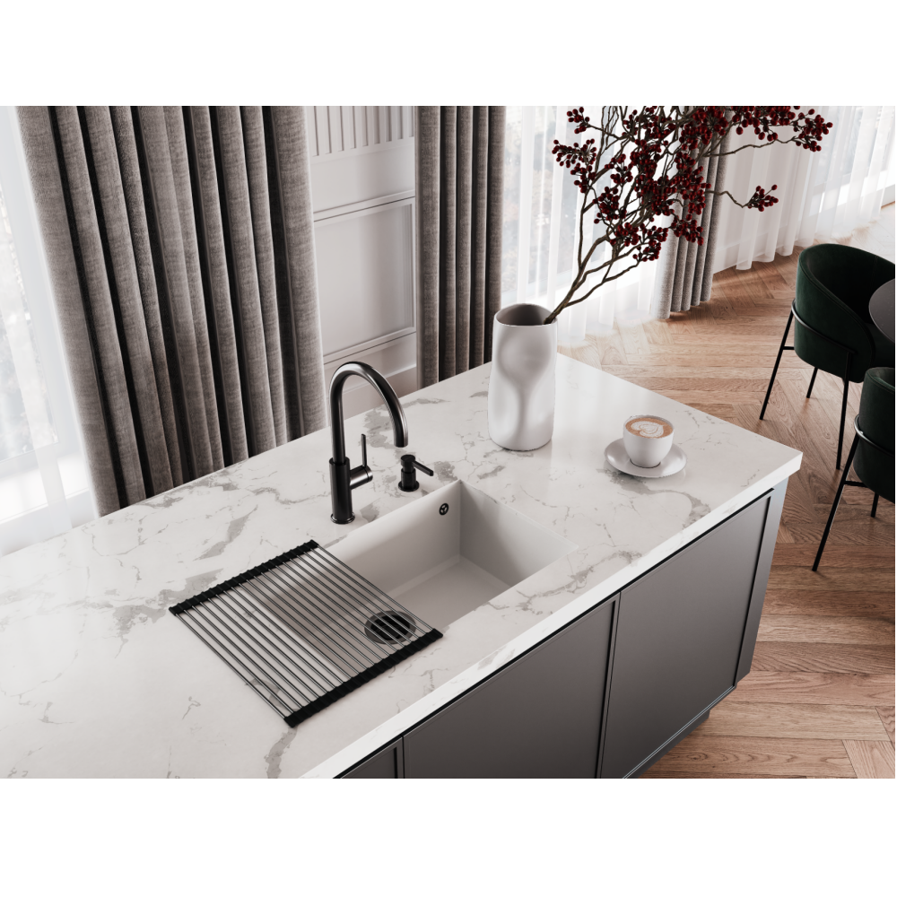 Смеситель для кухни Omoikiri Okawa 2 Plus с подключением фильтра оснащен рычажным управлением для регулировки температуры и напора воды. Горизонтальный монтаж на 1 отверстие. Поворотный излив 215 мм.